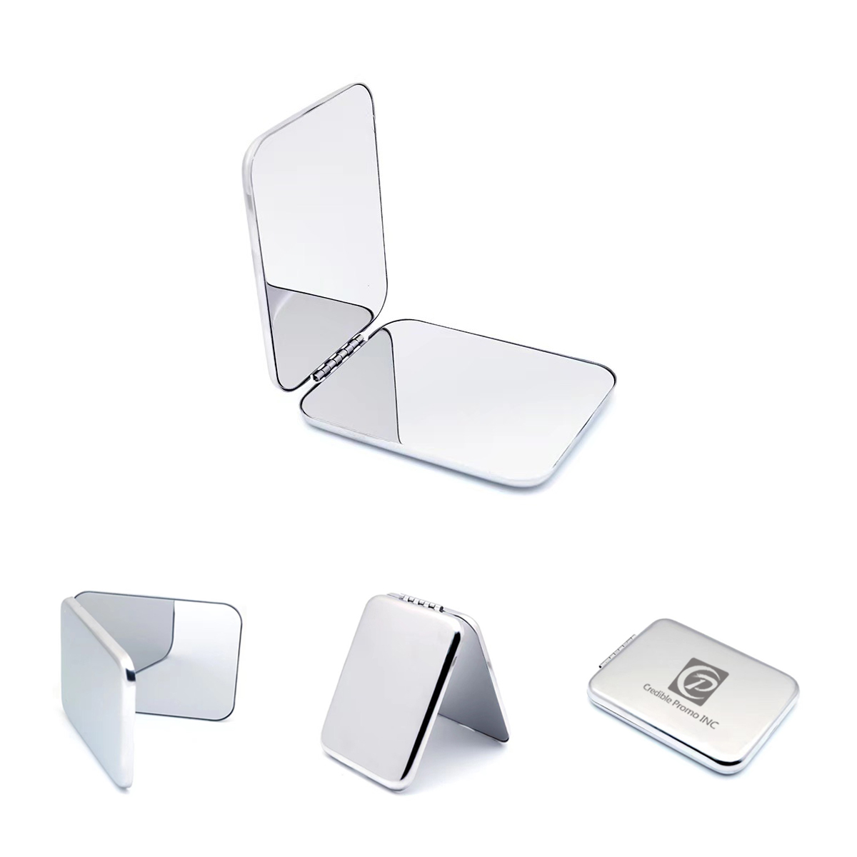 Size: 2.34 x 3.12 inch. Perfect size pocket mirror for purses. Portable double sided makeup mirror with 1:1 true ratio, no magnifying. This compact mirror is made of stainless steel unbreakable quality, suitable for all kinds of outdoor adventure, camping, travel.