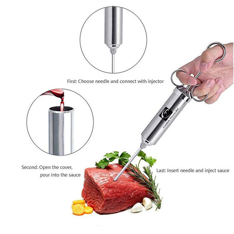 Stainless Steel Meat Injector With 3 Marinade Needles And 2 Cleaning Brush