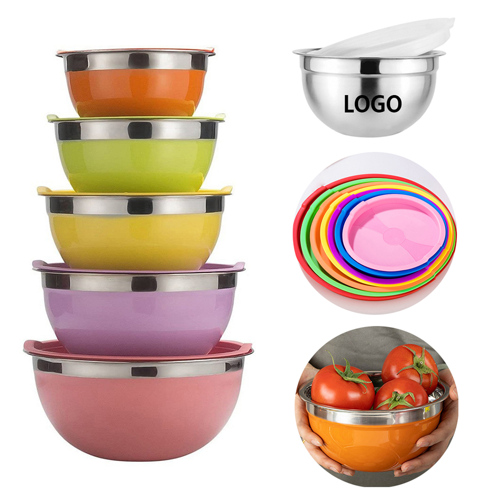 | Feature : | Stainless Steel Nesting Colorful Mixing Bowls Set Salad Bowl 5-piece Set With Airtight Lids |