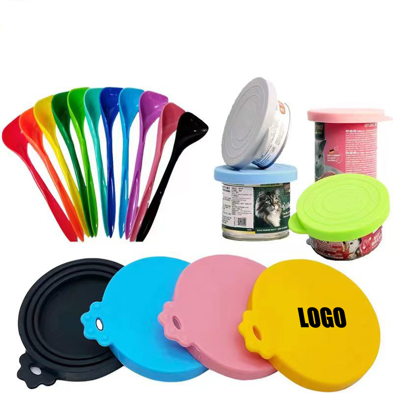 | Feature : | Pet Food Can Cover Universal Silicone Cat Dog Food Can Lids 1 Fit 3 Standard Size Can Tops with Spoon |