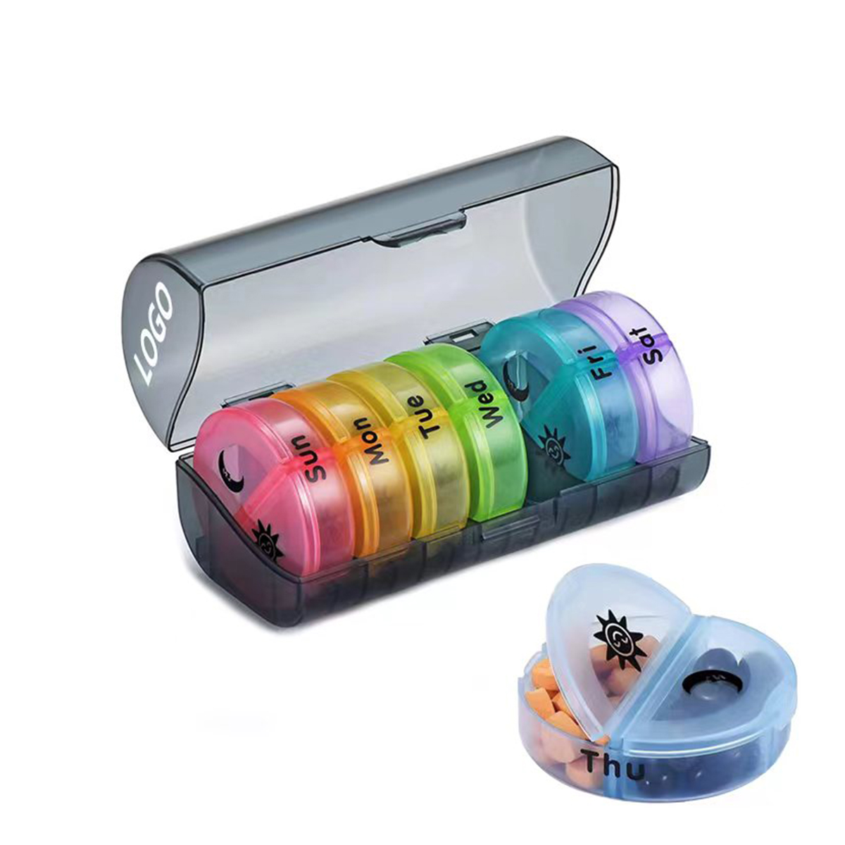 This daily pill case is made of food-grade plastic, BPA-free, and safe for medical use. The outer container and each daily pillbox have snap-shut lids to resist popping open even when dropped. Each cover was printed with week date and AM/PM icons to avoid mixing up, and each tray is divided into AM & PM compartments, separated cover, self-contained, and can be carried around. The daily pill case's size is as big as a palm, can be put in your purse or pocket easily.