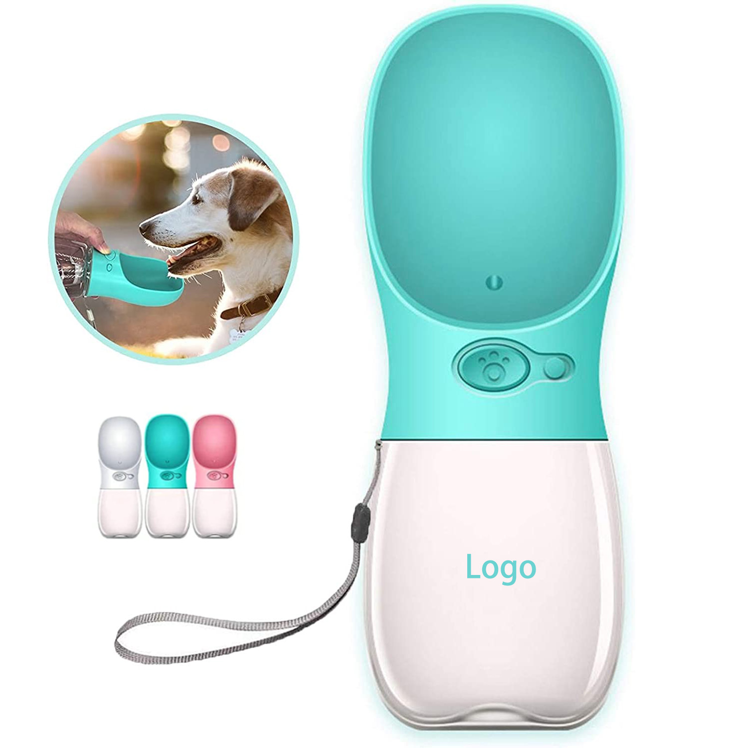 The portable dog water bottle made of high quality food grade material, make sure your pet completely safe when they use our dog water dispenser bottle. Silica gel seal ring plus lock key design, make sure the pet water bottle doesn't leak at all. No worry to get everywhere wet or waste water any more. Reasonable capacity, enough for outdoor walking, hiking and traveling. Compact size make sure you can put it in your bag easily, or take it on your hand by the attached strap conveniently.