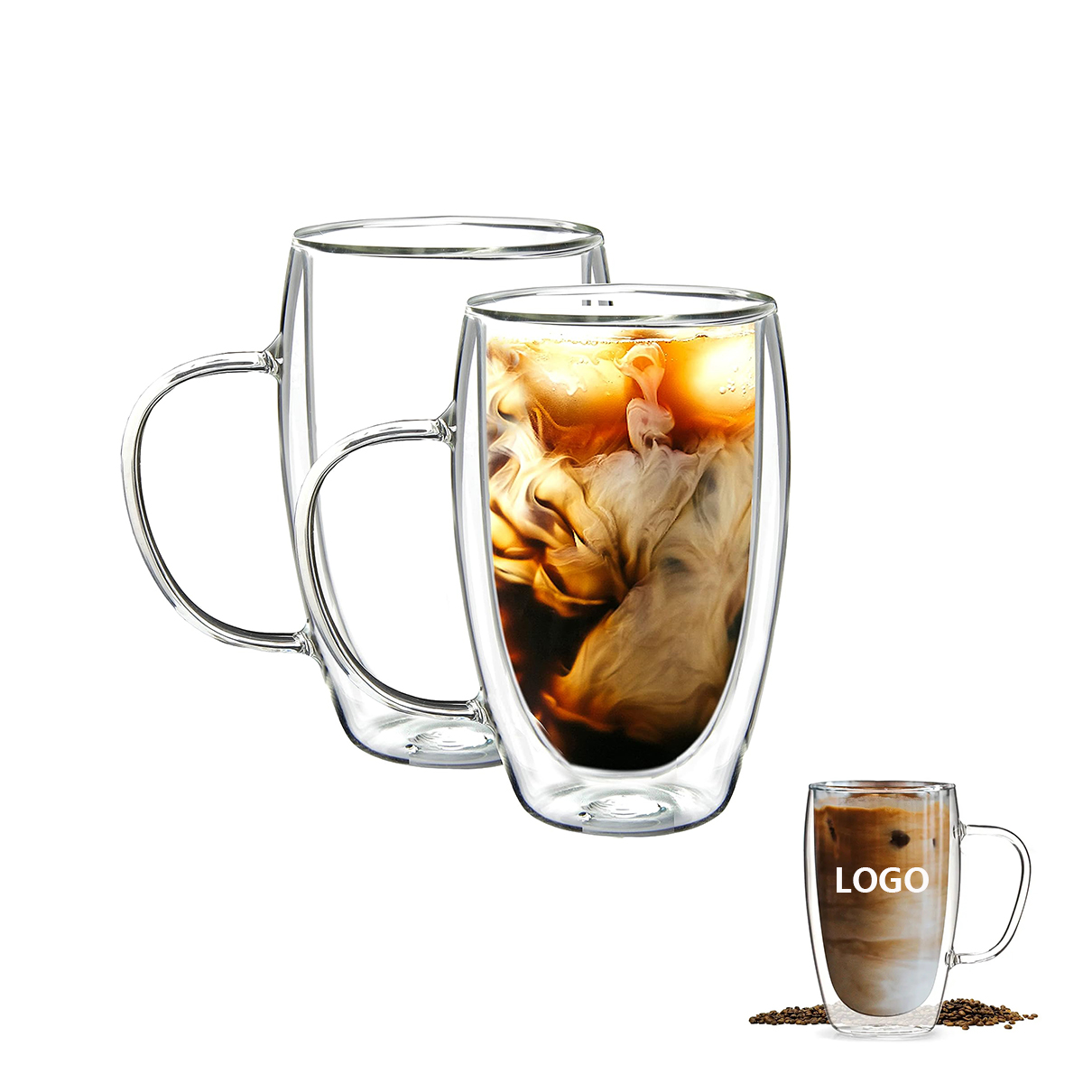 15 OZ Double Wall Insulated Glass Coffee Mug with Handle