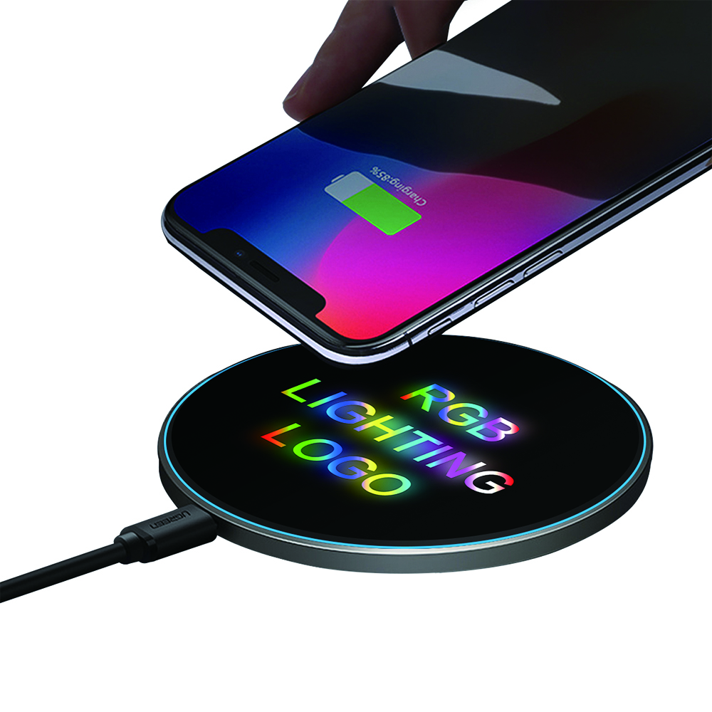 The 15W LED light up logo wireless charger has a unique design. 7 colors flashing LED cycle to iluminate laser logo. Our Wireless charger pad size 0.3inch thick, 3.9inch diameter, easy to put in your pocket. And it is easy to carry during travel or business.