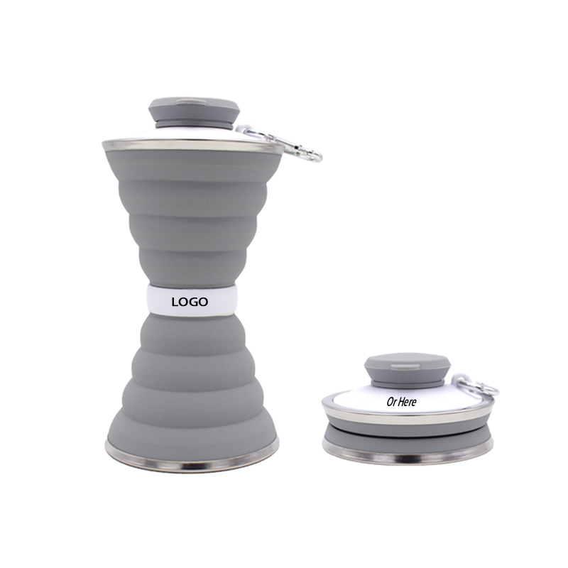 Silicone Travel Water Bottle is made of food grade silicone, BPA Free, and FDA Approved. It's body looks like an hourglass which is very easy to hold, perfect for travel. In addition, the bottle is equipped with D shape hiking hook, it is easy to be hung on the backbag, cross-body bags, handbags also Wallet. Metal buckle is very strong, rest assured hanging. The height of the Collapsible Water Bottle is 1.57 inches, after spread is 7.08 inches height, 3.74” wide. Maximum capacity is 500 ML/ 17 OZ. Heat resistant -50 degrees to 200 degrees Fahrenheit. Net weight 146g. Your logo can be imprinted.