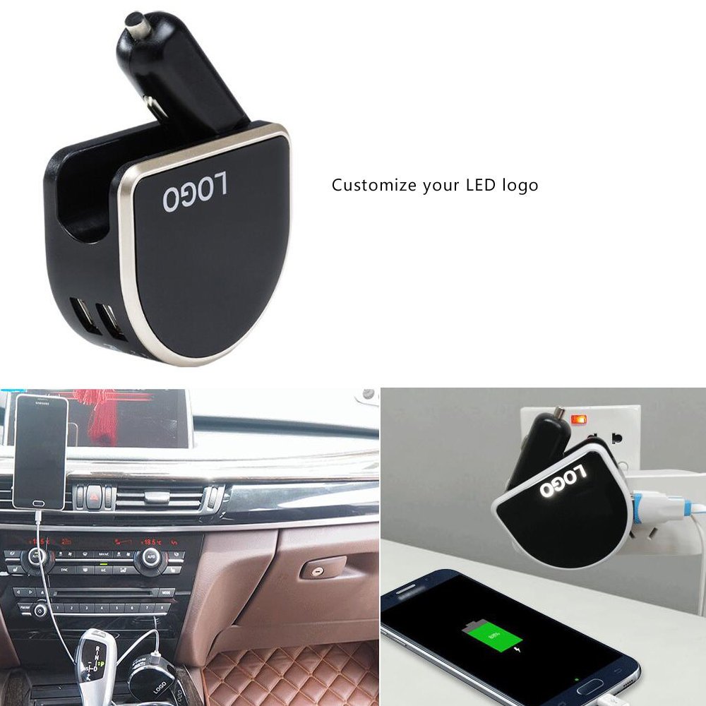 If you need to travel abroad frequently, but different countries have different plug standards, you will be very upset about this. But our new adapter can help you with it. It has 4 different standard conversion plugs, EU standard, UK standard, US standard and AUS standard, let you travel in more than 200 countries without worrying about plug problems. And two USB ports ability to charge your phone and tablet at the same time. Car plugs also allow you to charge your device in the car. High-brightness LED can show your LOGO very well. More details please feel free to contact us.