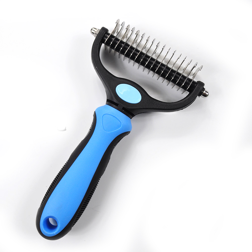 | Feature : | Pet Grooming Tool 2 Sided Undercoat Rake for Cats & Dogs Safe Dematting Comb for Easy Mats & Tangles Removing |