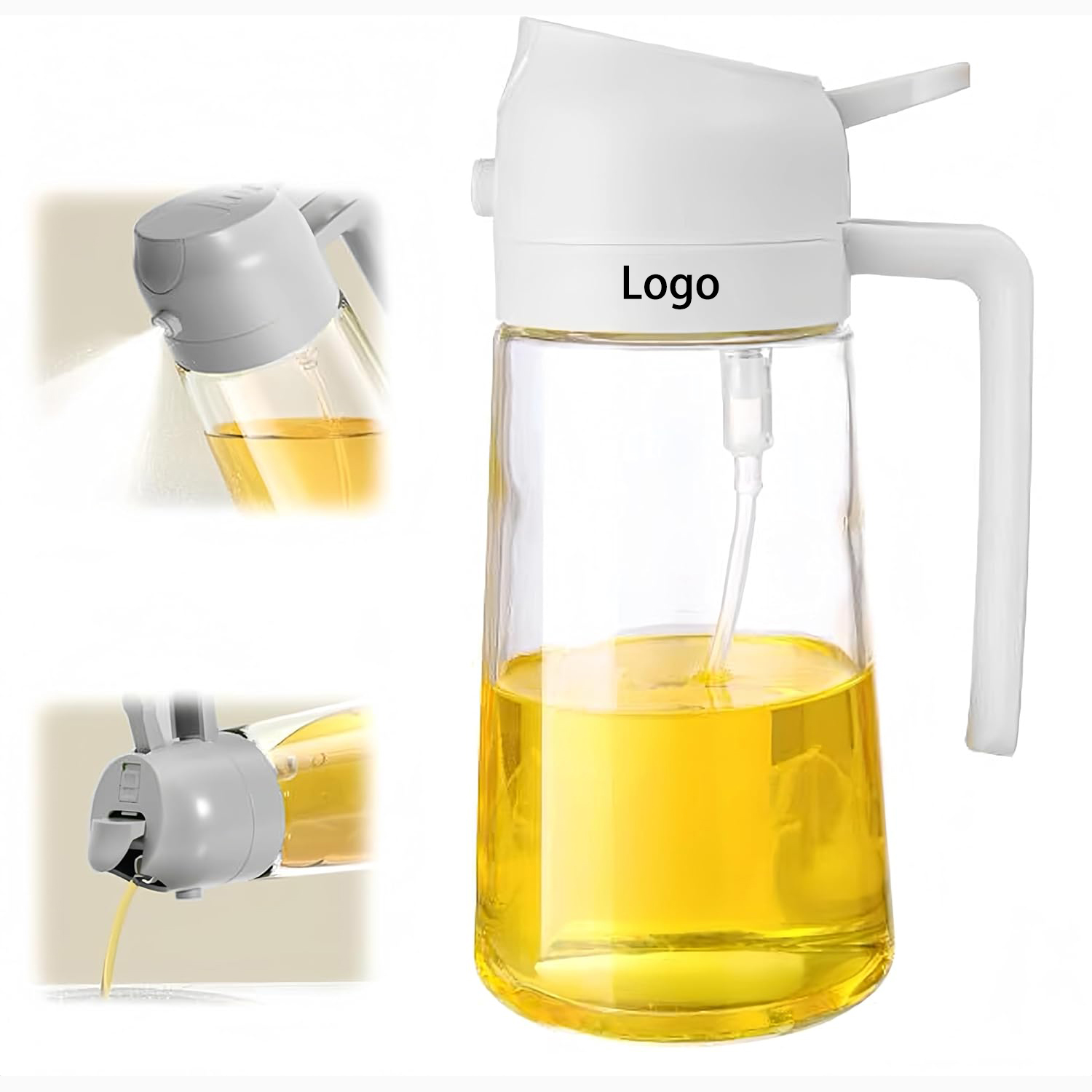 Olive oil spray bottle is designed to with the front-facing, prominent nozzle and the rear comfortable handle design enables users to achieve a fine, uniform, pure mist, users can pour or spray oil without getting their hands dirty. This spray bottle for cooking offers the convenience of both spraying and pouring oil, suitable for a wide range of food preparation processes such as dressing, griddle, roasting, grilling, baking.