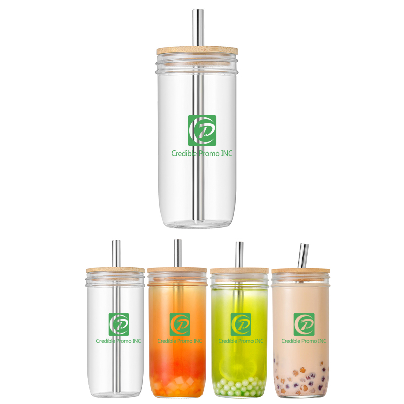 24 Oz. Mason Jar With Stainless Steel Straw and Bamboo Lid