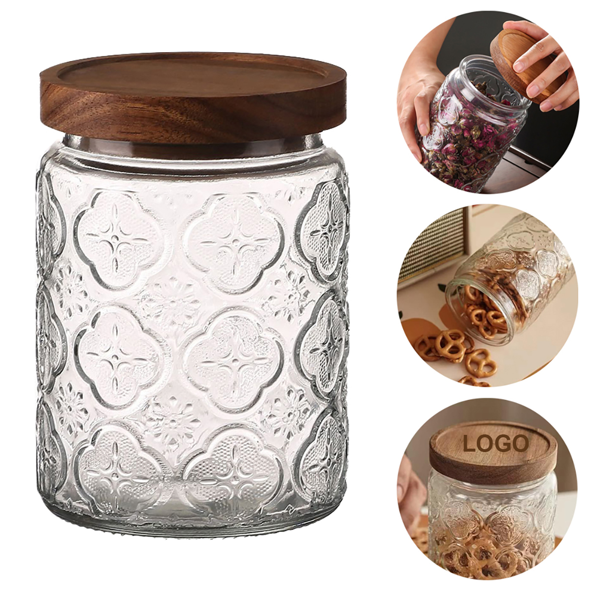 | Feature : | Begonia Flower Vintage Airtight Glass Food Jar 24oz Kitchen Canister |