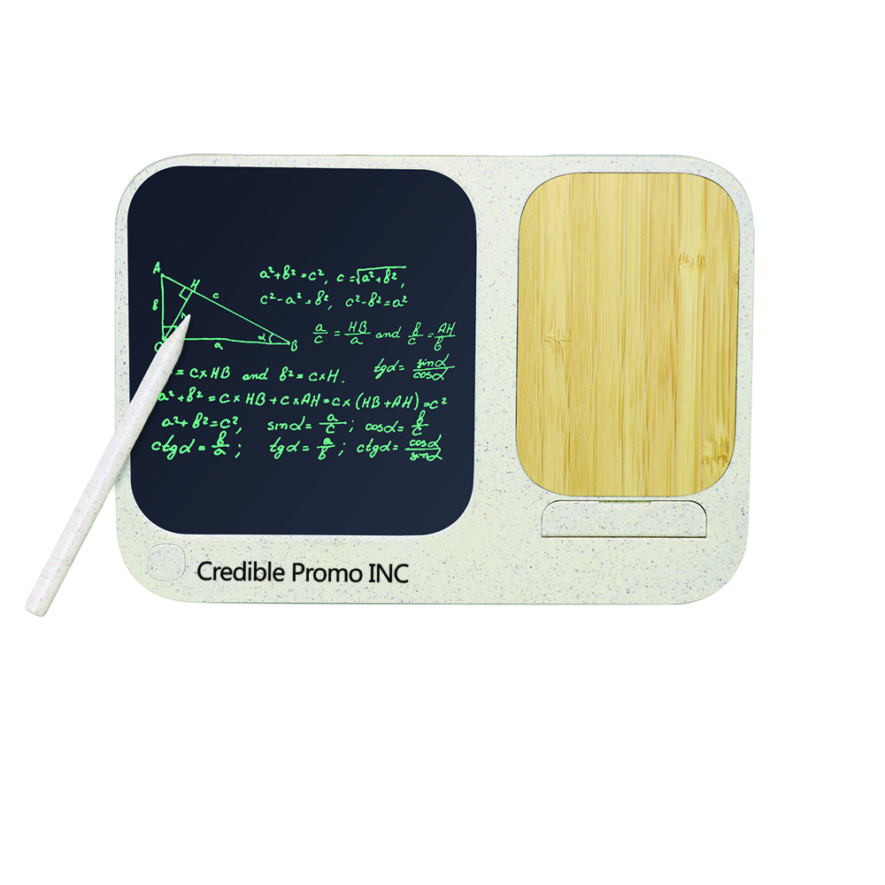 This reusable electronic write pad can be taken around for note taking, used at home or in office and school as scratch paper or message board. When one has nothing to do, it can be doodled on as a gadget. Think about what a notebook can do. And it is also a 15W Wireless Charging. It offers an eco-friendly way to power up your Qi-enabled devices. Constructed from biodegradable wheat straw.