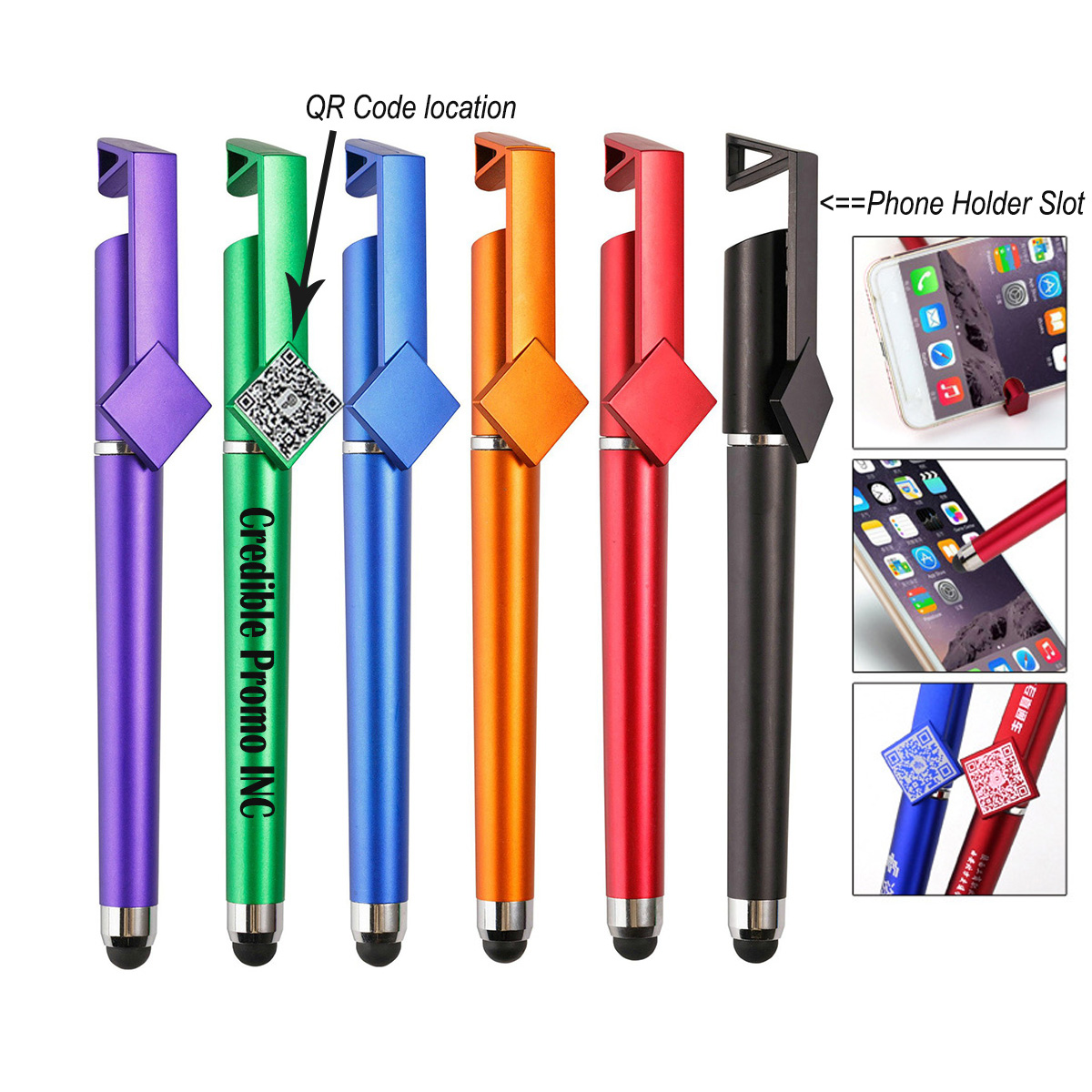 3 In One Multi Functional Plastic QR Code Stylus Pen With Phone Stand