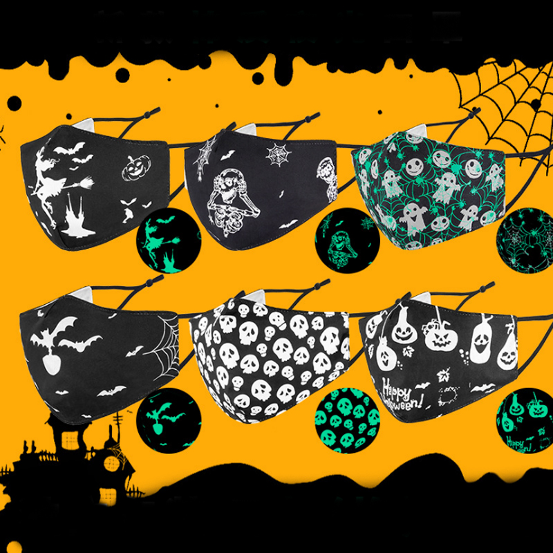 | Feature : | Glow in The Dark Reusable Halloween Luminous Costume Nonmedical Face Mask |