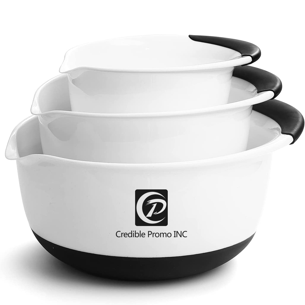 | Feature : | Mixing Bowls with Soft Grip Handles Prep Bowls for Baking and Cooking With Pour Spout and Non-skid Bottom Set of 3 |