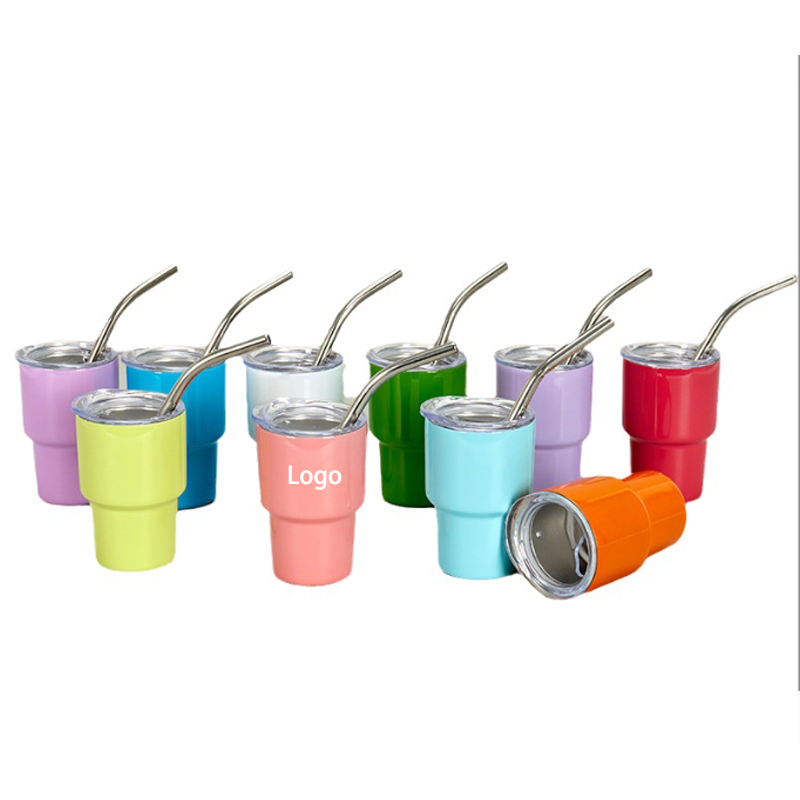 3oz Stainless Steel Cups with Metal Straws and Lids