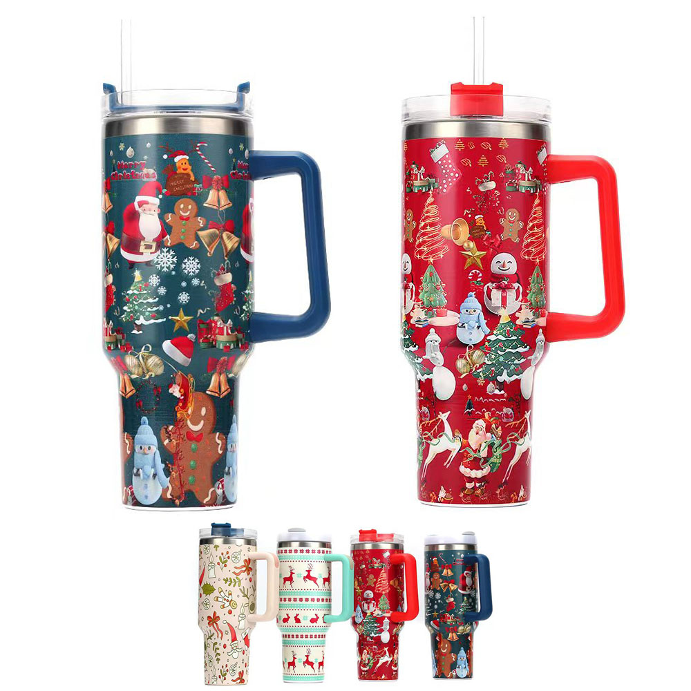 Wherever you go, take this 40 OZ insulated travel mug along with you, to enjoy your favorite drinking! Your vivid artwork can be full color UV imprinted on the generous imprint area, widely expose your company logo. Made from double wall stainless steel construction, keep drinks cold up to 11 hours & hot up to 7 hours. Screw-on straw lid with seal and a twist closure, come with strong and durable handle, reusable straw included. Fits most car cup holders (3" base diameter).