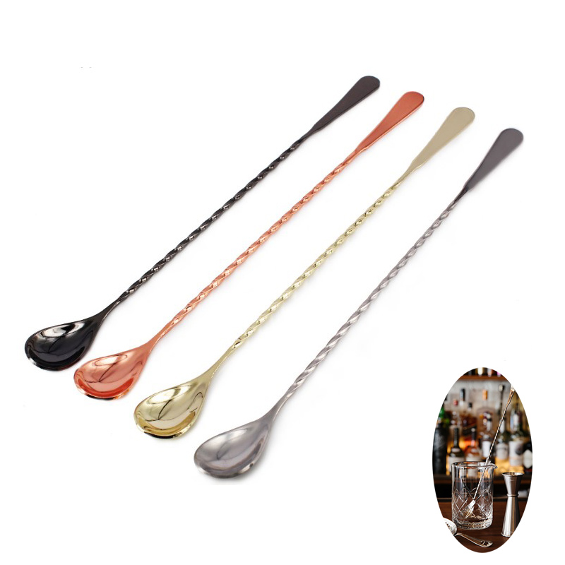 Bar spoon ensures your cocktail is thoroughly mixed. Ideal for tall glasses or shaker tins. The gold plating ensures you always serve the finest quality and professional look to every cocktail. Length 300mm/11.8", 400mm/15.7", 500mm/19.6" are available.