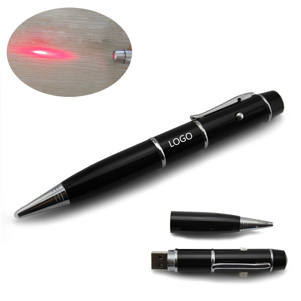 Laser Pointer USB Pen Flash Drive is a great executive gift which is highly portable and multi functional. It has 3 functions – USB Flash Drive, a pen and a very handy button operated laser pointer. The laser pointer USB Flash Drive comes in various colours most popular being black and silver. You can custom imprint the logo or engrave on the body. The laser pointer is operated with a button on top section of the pen. This product is a great for exhibitions or promotional gift for customer meets, media events and other formal events. Our price is based on the 4GB memory and paper box. We also have 8GB 16GB 32GB 64G with metal box for your choice. Welcome your inquiry.