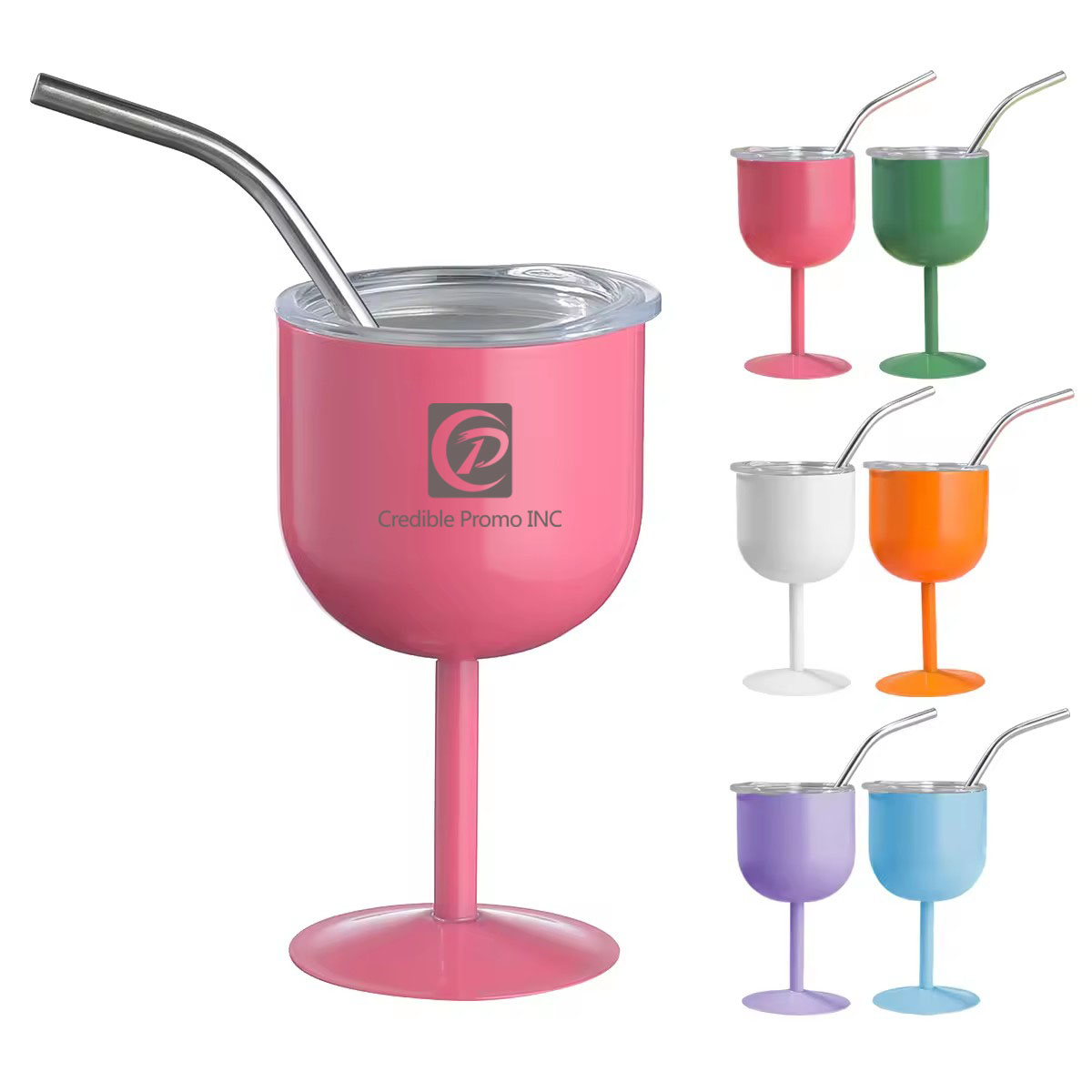 4oz Stainless Steel Wine Cup Champagne Glass with Lid and Straw
