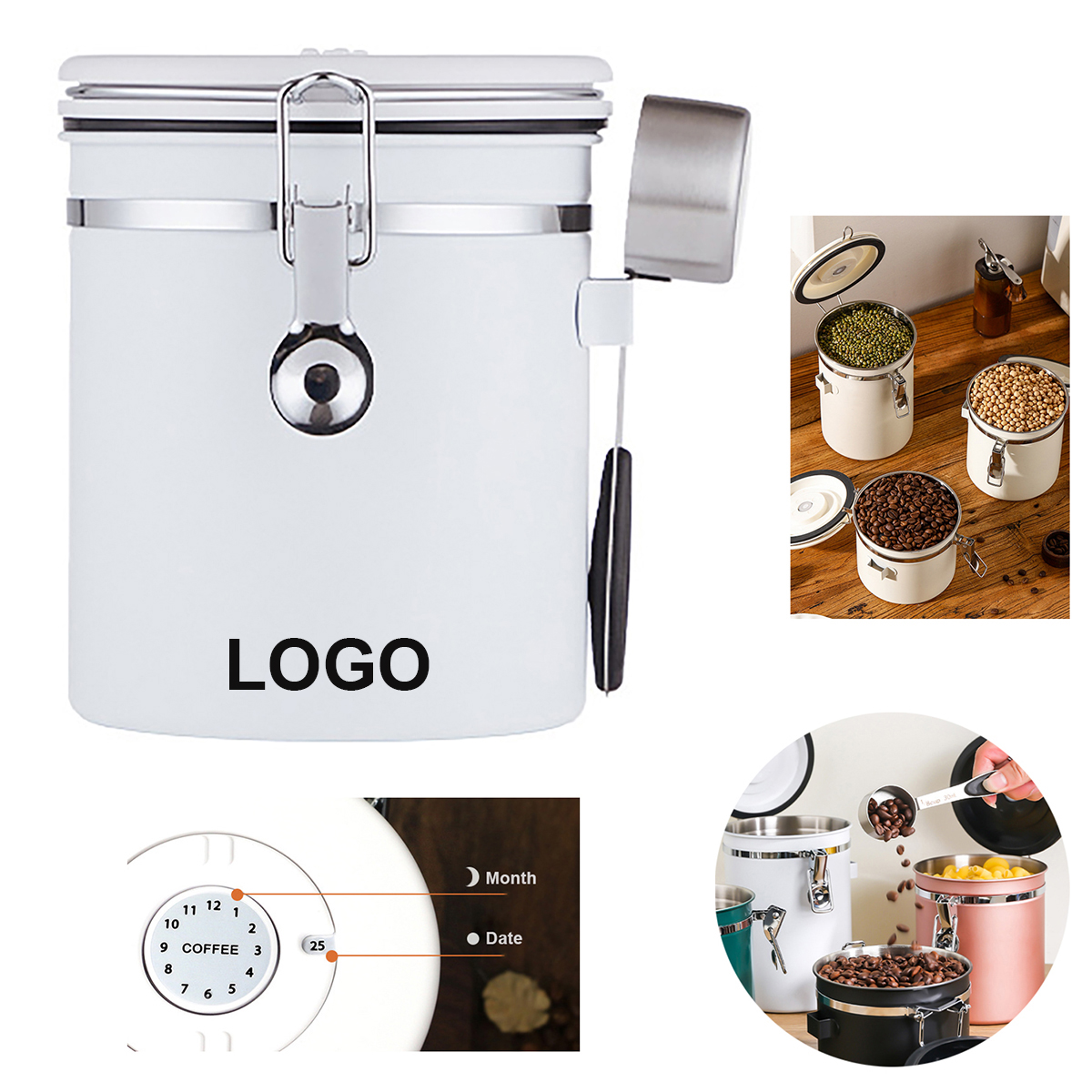 Our coffee cans help keep coffee beans fresh with a valve and a BPA free silicone rubber seal that keeps air out and avoids oxidation. You can use the date tracker on the lid of the coffee storage jar to set a storage or expiration date. We also offer a free stainless steel coffee scoop that attaches to the hook on the outside wall of the jar. Perfect for any occasion, and it is the ideal gift for coffee lovers.