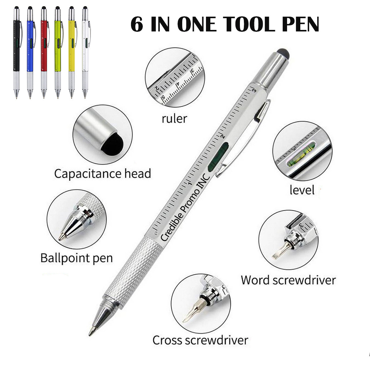 6 In One Multi Tool Pen With Level And Screwdriver