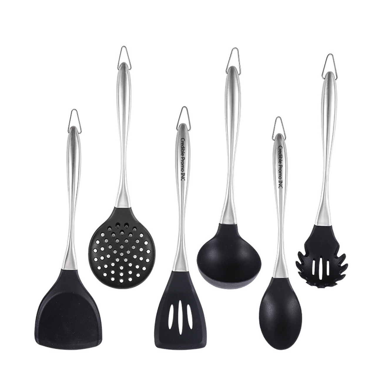 6 Pcs Heat-resistant Non Stick 304 Stainless Steel Handle Silicone Turner Soup Ladle Kitchenware Set
