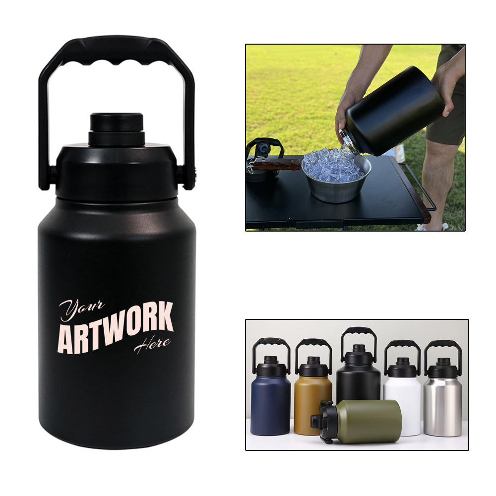 64OZ Half Gallon Stainless Steel Vacuum Insulated Water Jug Bottle Growler With Twist On Spout Lid Handle