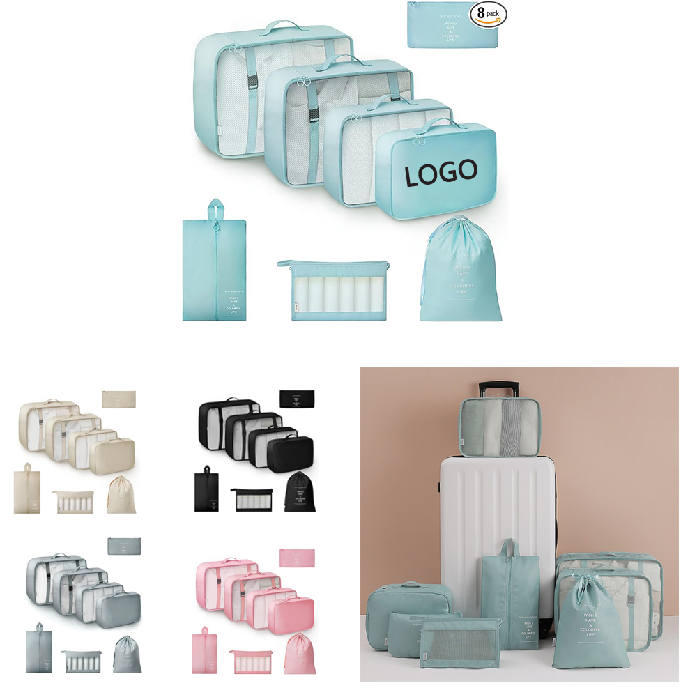 Our packing cubes comes in 8 pcs, including cloth bag for 3 sizes, underwear bag, shoe bag, laundry bag, zippered bag, toiletry bag, to meet your different storage needs when you travel. Large interior volume holds all your travel clothing, shoes, makeup, shaving accessories, keys, charger, usb data cable and more. Multiple Sizes - 8-pack different sizes of packing cubes for suitcases can fit in most common suitcases, such as sized 20鈥, 24鈥, and 28鈥, also suitable for handbags, travel bags, backpacks, and duffel bags.