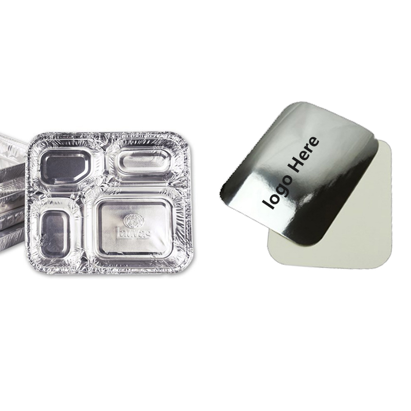 | Feature : | 820ml 3 Compartments Aluminum Foil Takeaway Packaging Box with Lid |