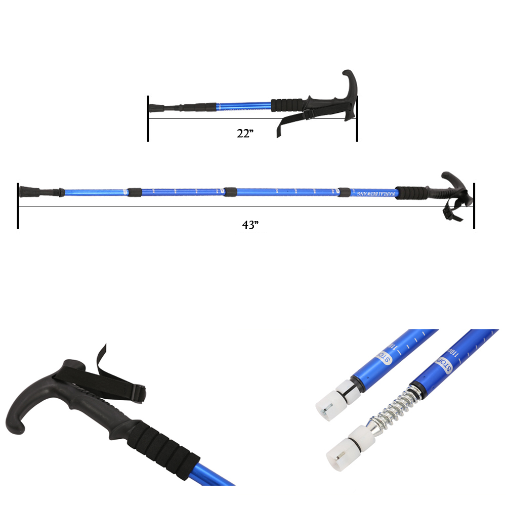 Our trekking poles with more comfortable grips and wrist straps for added comfort on your hiking trips! Grips are more ergonomically designed. Each pole can extend in length from approx. 22" up to 43", allowing the poles to be great for people of any height. These hiking poles are made of good aluminum, making them durable and light enough. Custom your laser logo on the pole.