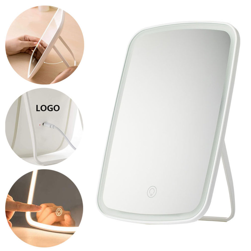 | Feature : | Portable USB Rechargeable LED Touch Screen Square Vanity Mirror With Foldable Stand and Adjustable Brightness |