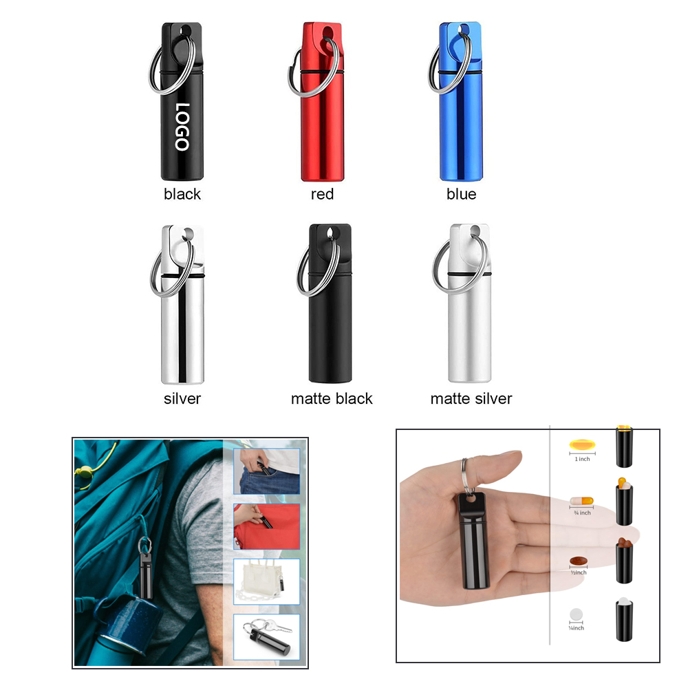Aluminium Alloy Mini Pill Organizer Case Container Keychain