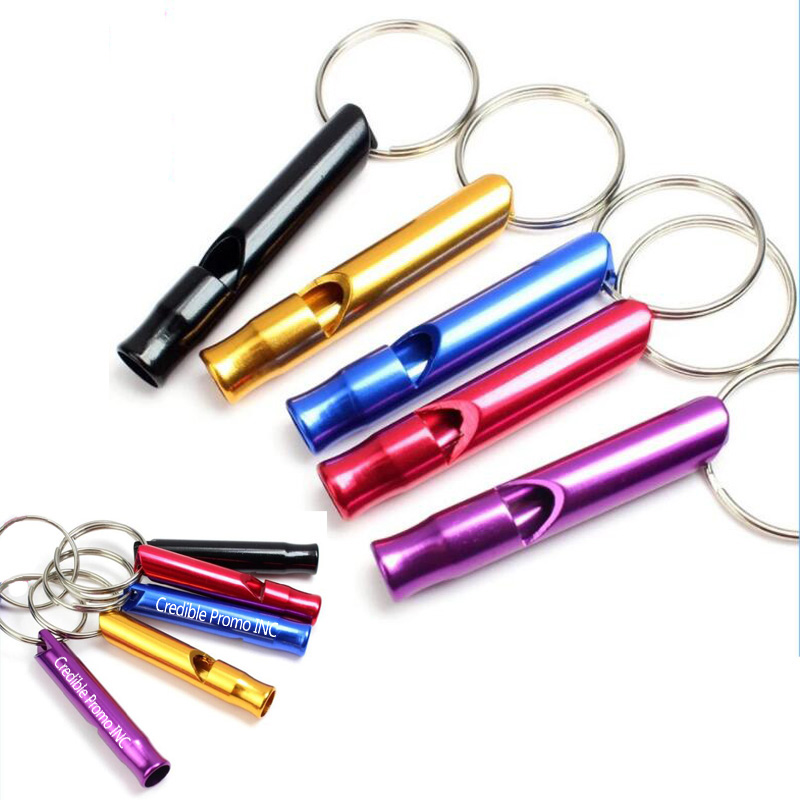 Custom promotional survival whistle, made from aluminum alloy. Keychain design make it easily to be attached when you go to outside. Big size: 2.44" length x 0.47" diameter. Great item for any emergency, adventure, camping, mountaineering, hiking, sports, and so on. Many colors for your option. Your artwork can be laser engraved on it.