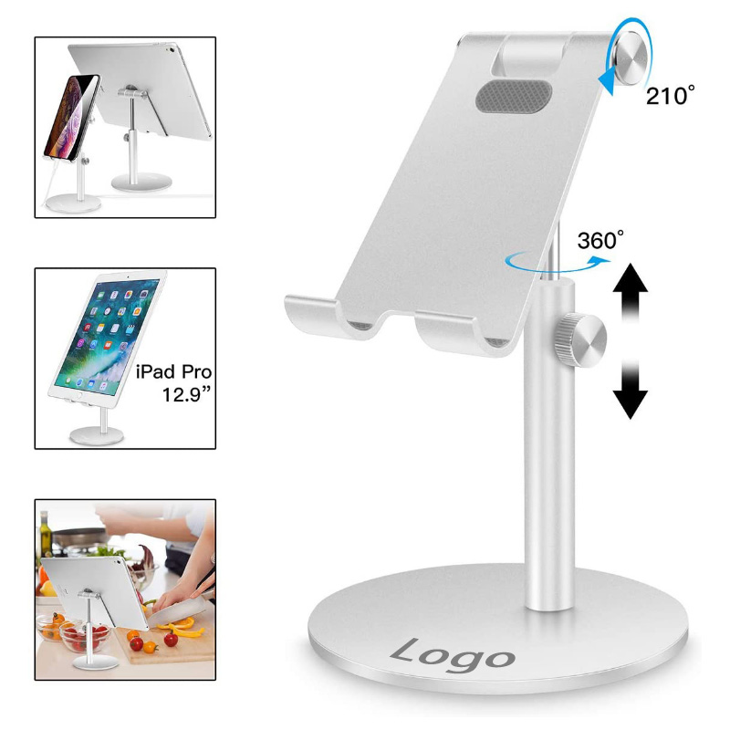 Tablet stand applies to 4-13 inch tablet PC such as new Apple Pad, Air mini Sam sung Tablet. Supporting both vertical and horizontal viewing. The height of Apple pad stand holder can be easily adjusted between 5.5in-7.8in and the angle can be adjusted 360 degree. You can adjust it to the best viewing angle which helps to fix your posture and reduce neck & back strain. The pad back and the bottom of this cell phone stand are fully covered by anti-skid silicone, which can provide maximum protection for your device from any scratches and slide. Your custom logo can be laser engraved or silkscreen on.