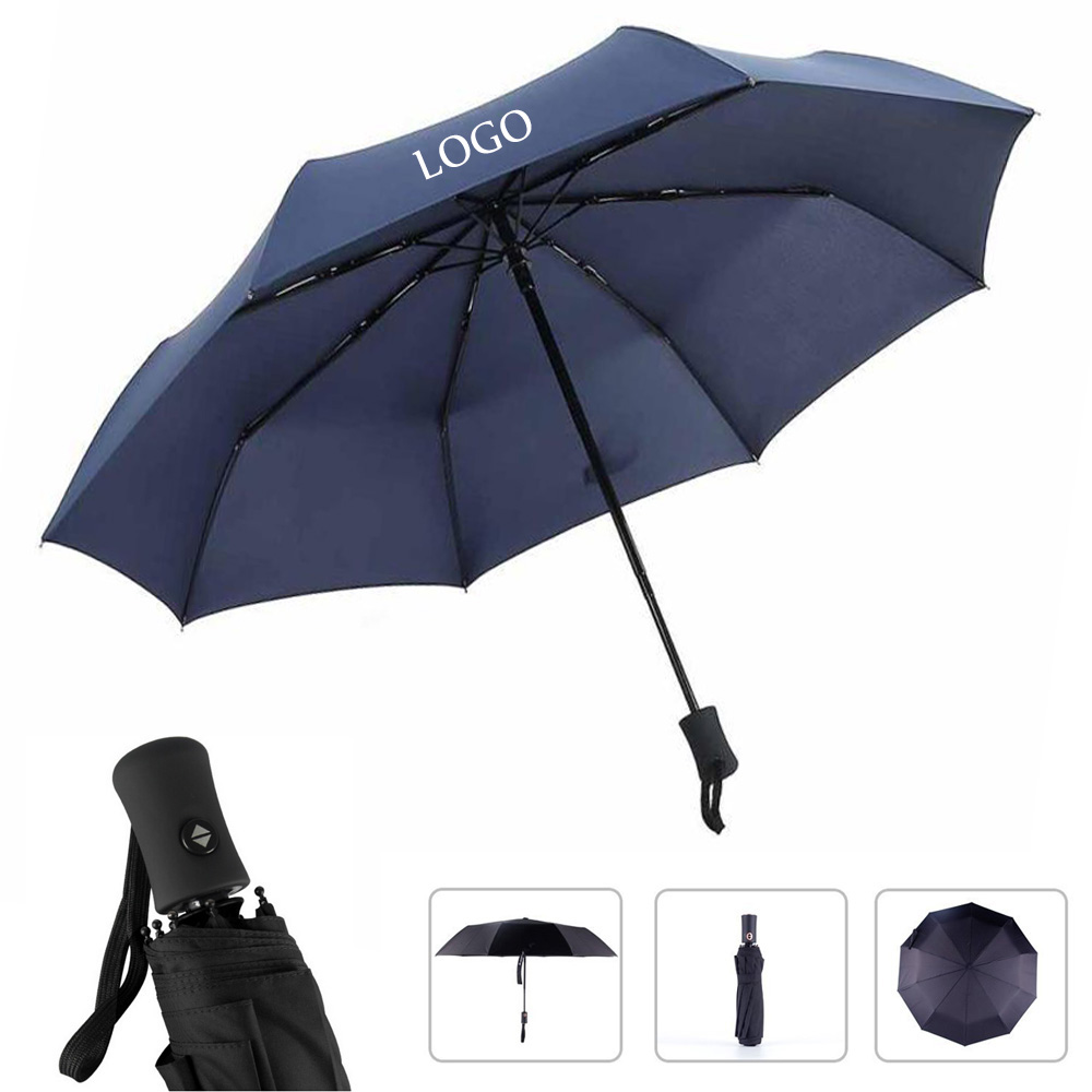 Made from 190T Pongee cloth, acrylic center pole, and 8 steel ribs. The handle touches good with rubber paint. Opening diameter is about 40" x 8K. Folding size is about 11". When you press the button, it will open automatically. Simply open or close the umbrella with a press of a button within one second. 10 ribs umbrella can be done, too.