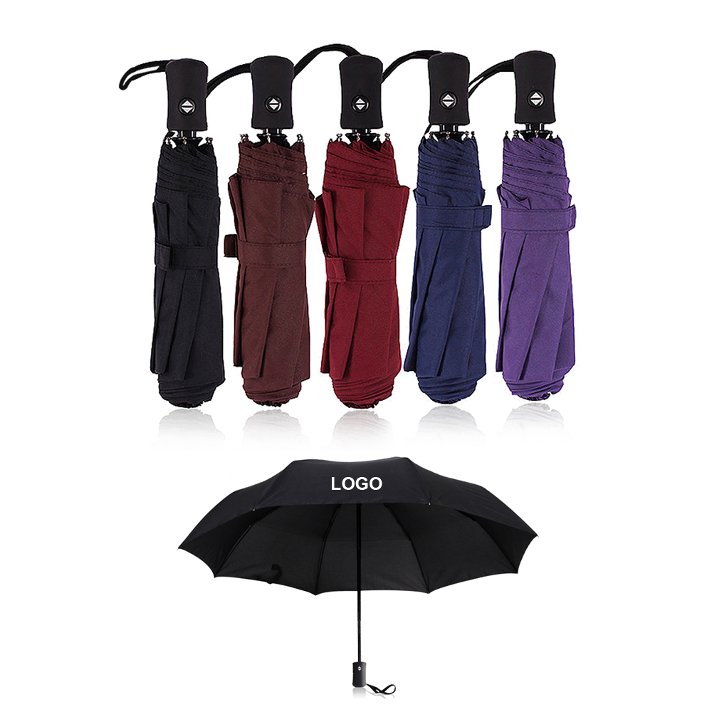 Fold size is about 11"; Open diameter is about 37". 8 panels. It can resist wind, rain and Sun. As a 3 fold umbrella, it's automatioc and easy to open and close. Great idea to advertise or give as present.