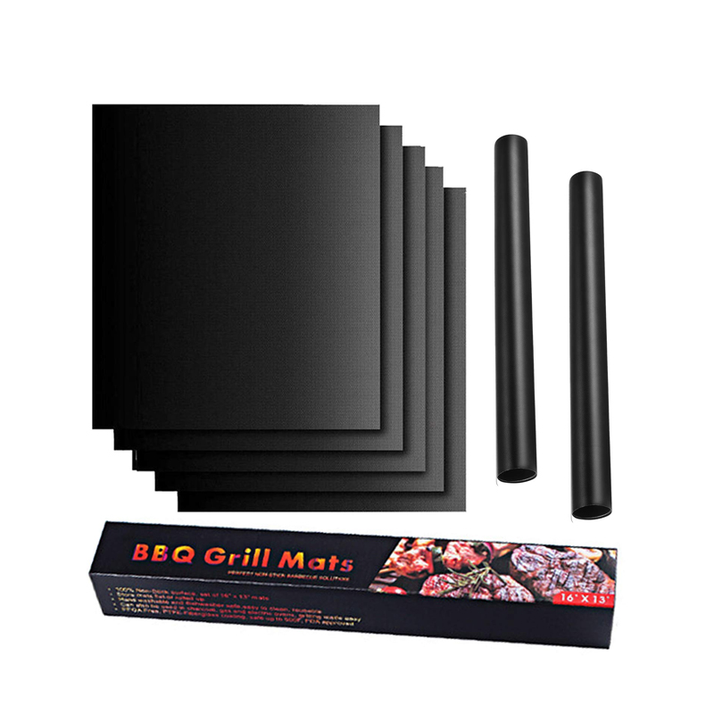 Grill mats are made of FDA-APPROVED PFOA-Free materials and premium PTFE-Fiberglass, no PFOA, silicone, or other harmful chemicals. It's reusable and can be used over 1000 times for grilling, roasting, and even baking! Non-stick means you can grill/cook without worrying about grease&stains. Non-stick helps to clean and extend the life of the grilling mat. BBQ Grill Mats can be cut to any size or shape to fit your kitchen/grill/oven/stove/pans/cake/tin and etc.