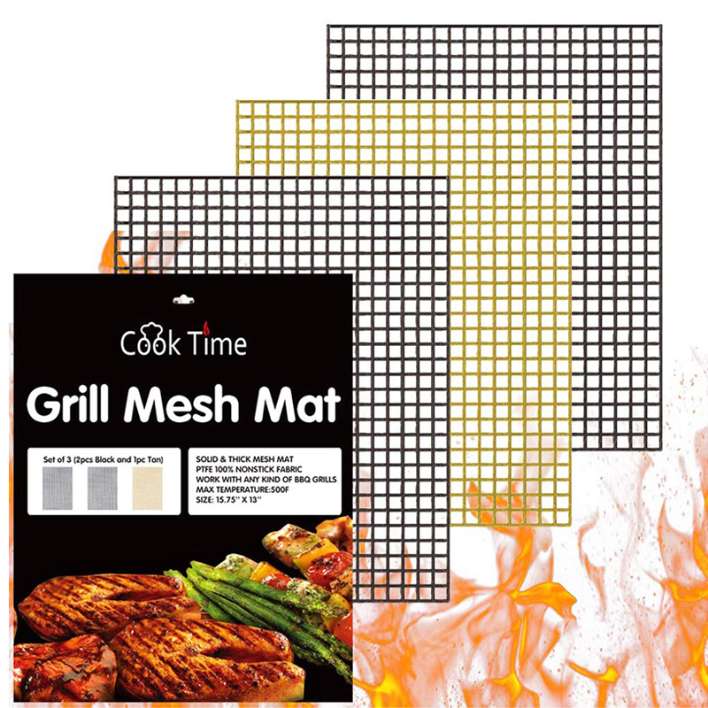 Grill mesh mats are made of FDA-APPROVED PFOA-Free materials and premium PTFE-Fiberglass, no PFOA, silicone, or other harmful chemicals. It's reusable and can be used over 1000 times for grilling, roasting, and even baking! Non-stick means you can grill/cook without worrying about grease&stains. Perfect for any grill, including as Gas, Charcoal, Propane, Electric BBQ Grills Fire Pits, Oven or Smoker. These grilling mats can also be cut to fit your particular grill or oven perfectly. Grill meat, vegetables, fish, shrimp, pizza, even pancakes, bacon and eggs!