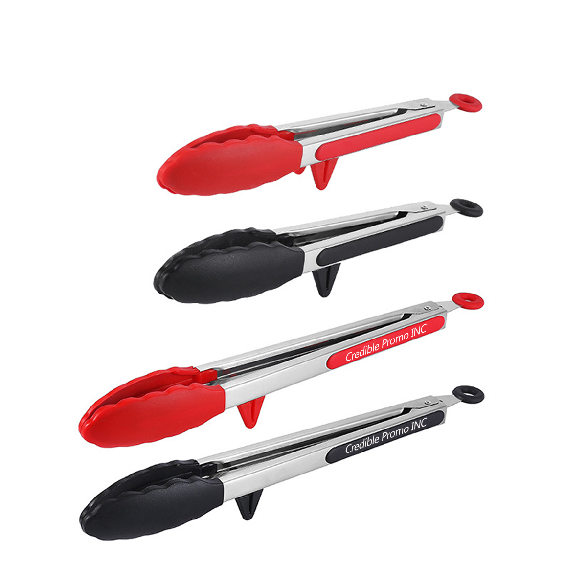 Made of stainless steel and high quality non-stick silicone tips. Shell-shaped tongs with silicone tips, effortless to hold/non-stick meat and anti-scratch cookware. Suitable for bread, barbecue, ices, salad, spaghetti pasta etc. L 10.5" and L10.7" included.
