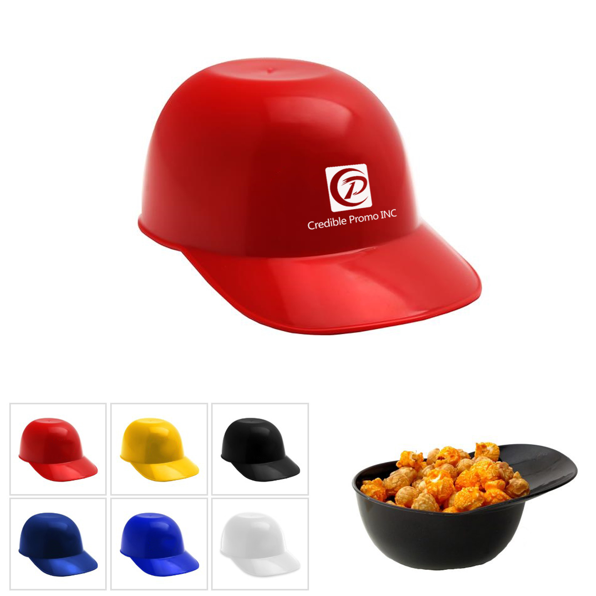 8 oz. Bowl in the shape of a Baseball Helmet. Available in a variety of colors. Perfect for Ice Cream, Sundaes, Chips or Pretzels. Create a souvenir including your local team or business logo. Food-Safe Polypropylene. Perfect for sports events, giveaways, summer camps, and food retailers.