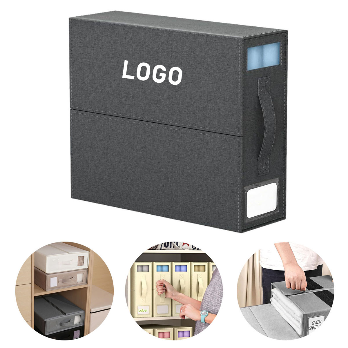 | Feature : | Foldable Visible Storage Box Bed Sheet Cube Organizer with Window and Label |