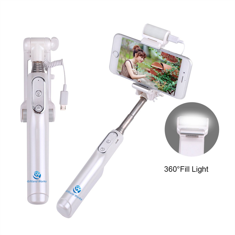 Bluetooth Selfie Stick With 360 Degree LED Fill Light