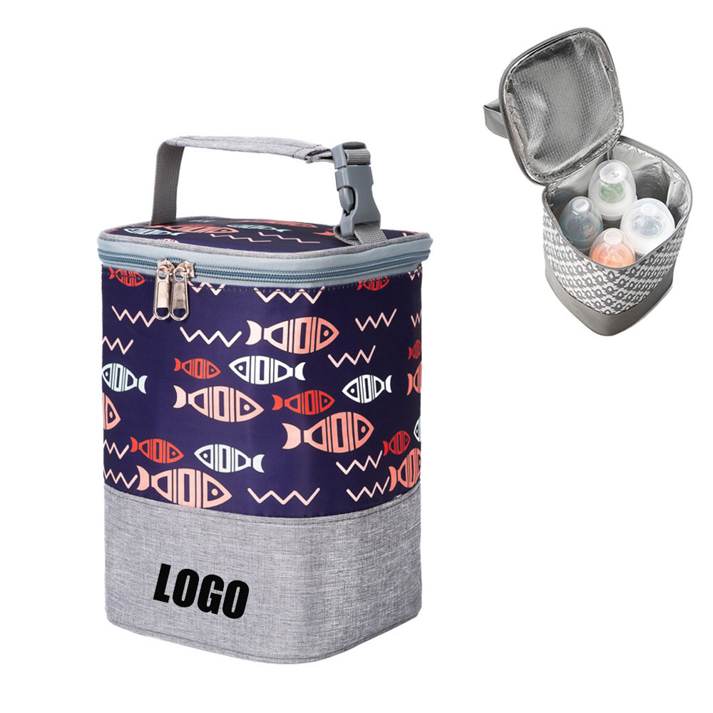 The milk bottle cooler bag's size is 9.05" x 5.9" x 5.9". Suitable for up to 4 large 8oz baby bottles at once, meet baby daily needs. Perfect cooler bag for transporting breast milk from work to home or leave with daycare. It also can be used as lunch bag.