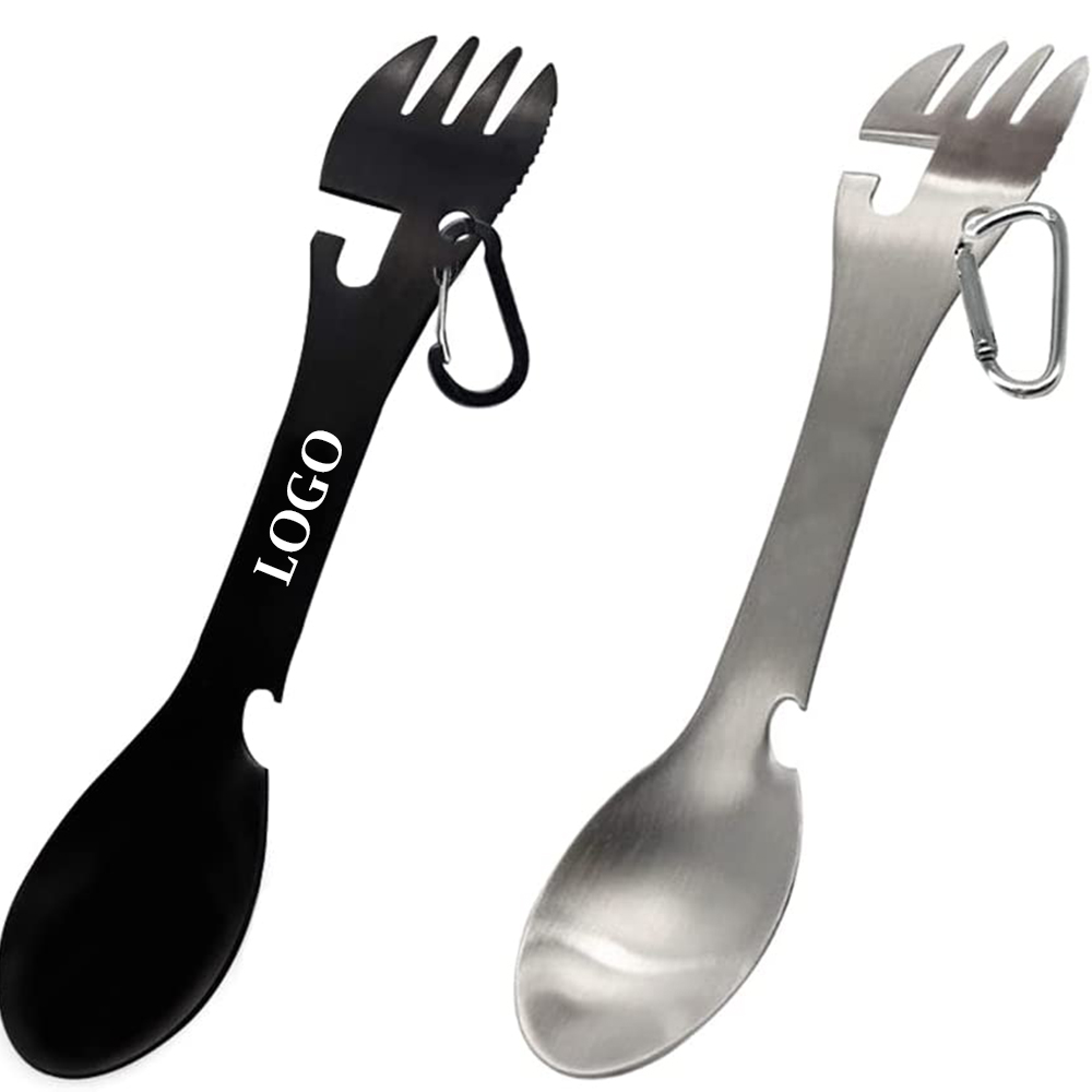 Camping Spoon Fork Bottle Opener Multifunctional Tool with Carabiner