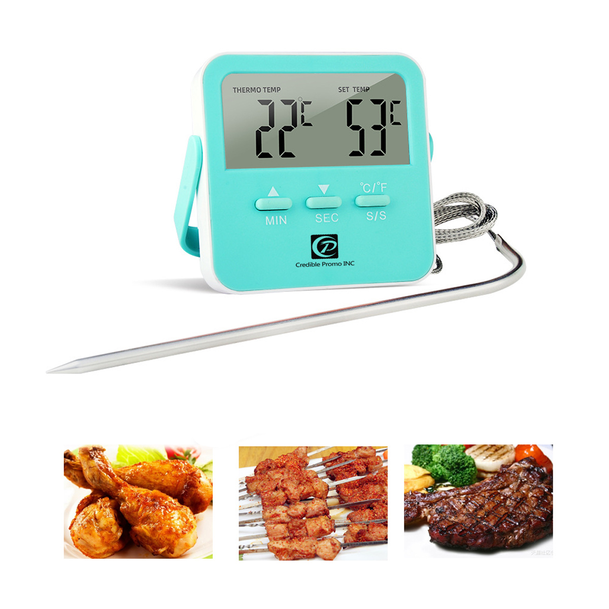 Candy Color Food Thermometer Digital Kitchen Timer With Stainless Steel Probe
