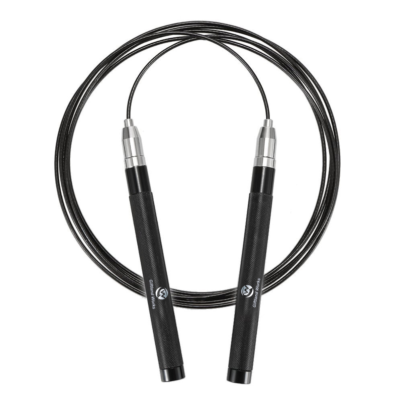 This Jump Rope features upgraded self-locking structure with built-in high-performance double bearing system to ensure smooth and fast 360 degrees rotation. This jump rope is designed all in one, instead of ccrew connection, it can help to free your worry about breaking joints or flying screws. The aluminum handle is friendly designed, unlike the ordinaty rubber handles on the market, this 7" long non-slip aluminum handle ensures a firm grip. It's highly recommended for folks serious about cardio training, easy to store and adjustable.