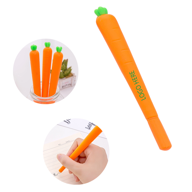 "Gel Pens shaped like carrot. Smooth writing in writing experience. Perfect for school, office and home use. Every kids will love this pen. Your customized artwork can be silkscreen imprinted on it.