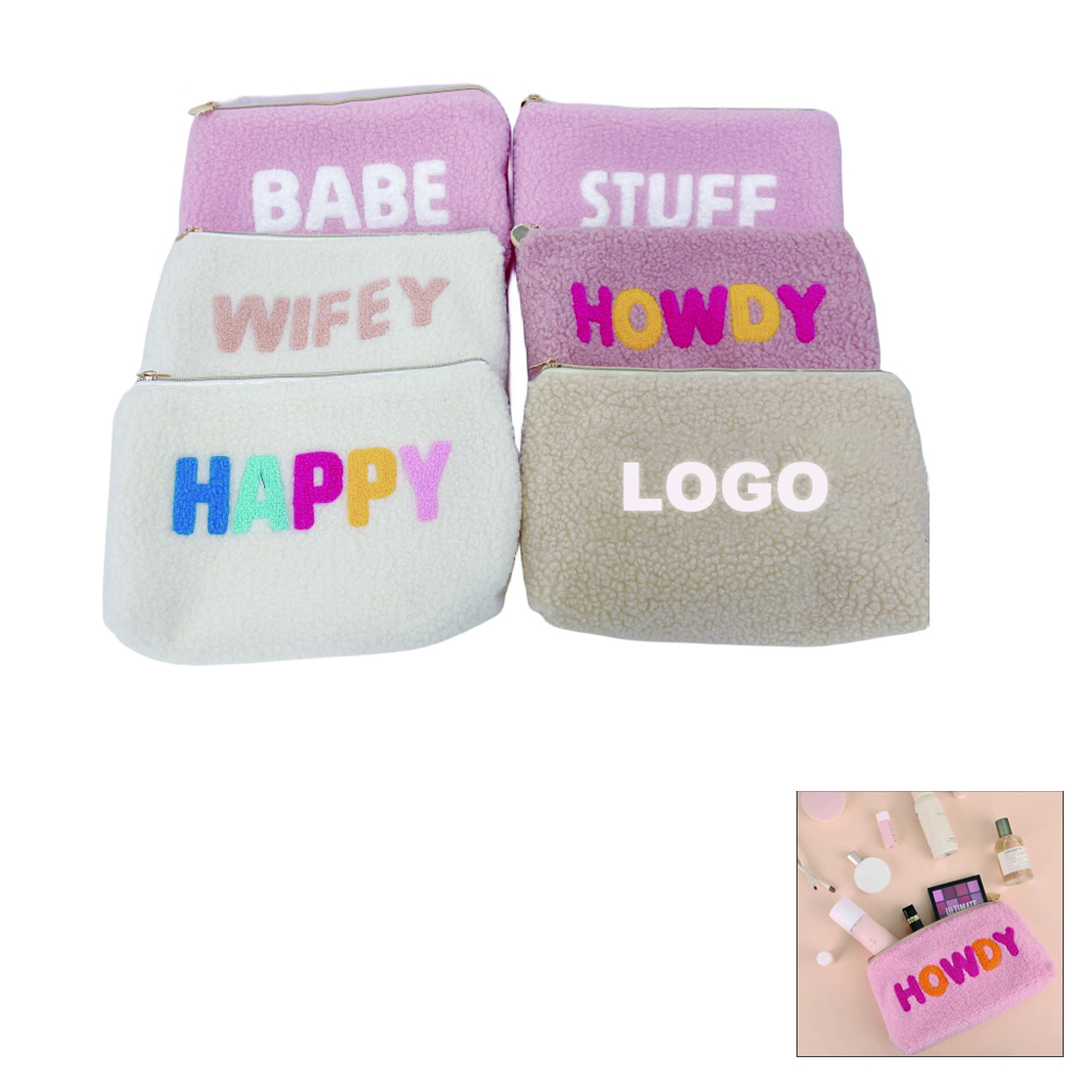 Chenille Letter Plush Fuzzy Makeup Bag Flat Zipper Pouch