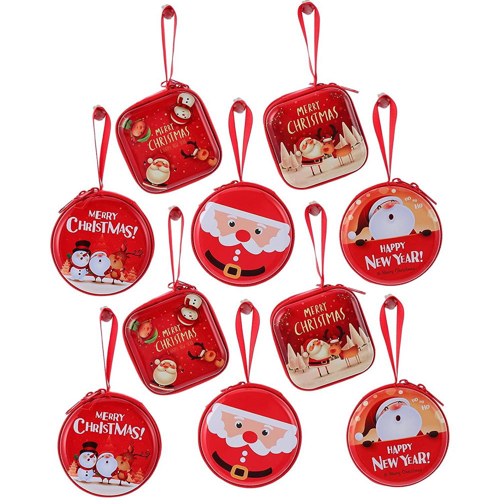 This Christmas coin wallet is made of high quality tinplate and has a zipper designed to protect your coins from falling out. The Christmas wallet is 2.76 inches in diameter and easy to carry. The coin purse is holding coins, changes, folded bills, keys, receipts, etc. In addition to the round style, there are also square styles. You can choose the existing pattern to purchase directly, or you can print your own unique logo according to your needs.