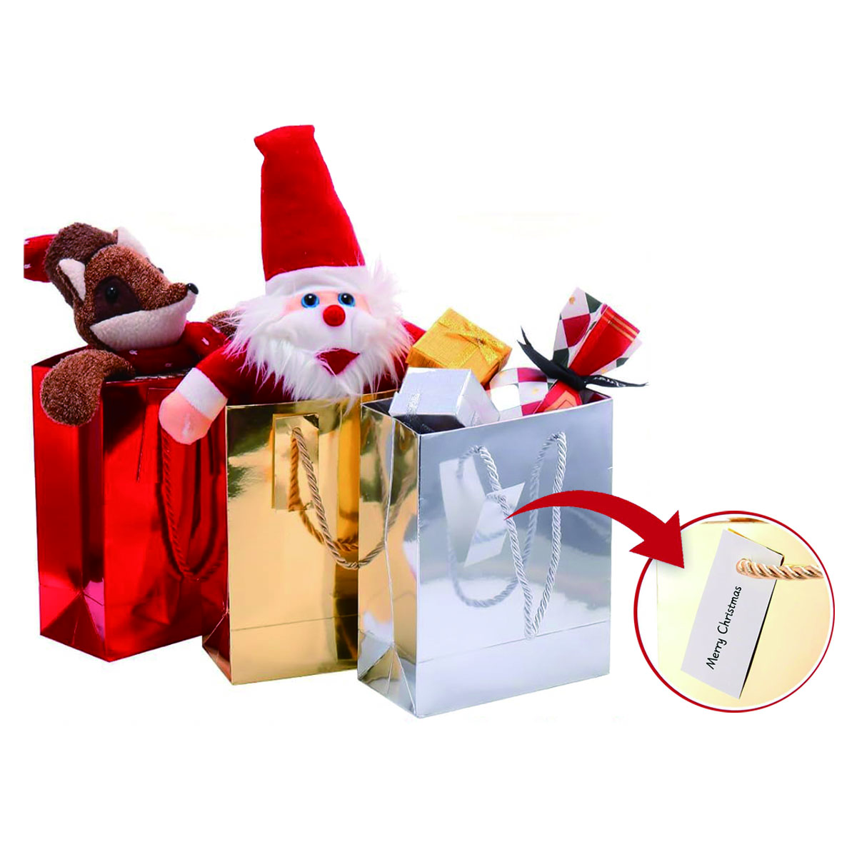 | Feature : | Christmas Metallic Foil Gift Bag with Gift Tag |